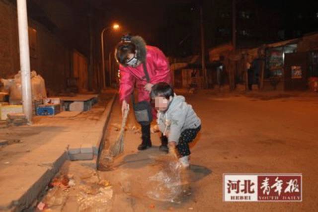 一个两岁多的小男孩每天晚上都会拿着笤帚 有模有样地在街边扫地 因为他妈妈是摆水果摊的 每天收摊前会将散落在地的果皮瓜子壳清扫干净 这一切孩子都看在了眼里