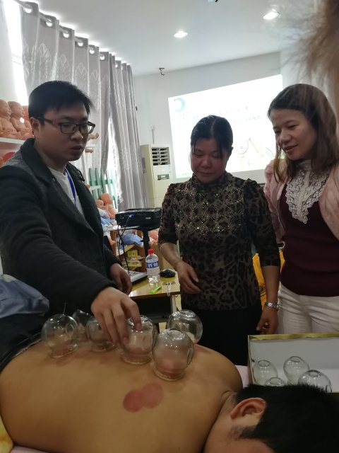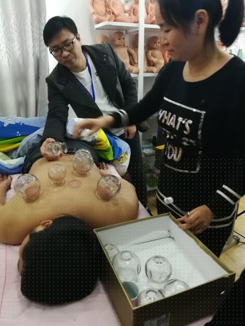 催乳拔罐:找到心俞、脾俞、足三里等穴位,用艾灸在选定的穴位灸后吸拔火罐。在湘潭银海培训学校这期的催乳师培训班中,毛碧伦老师就教授了学员们这种拔罐疗法。