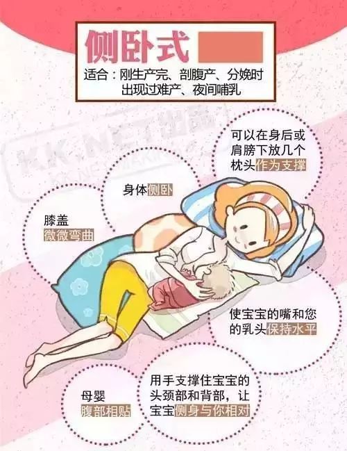 第一种和第二种哺乳姿势是宝妈用的最多的姿势,尤其是躺着喂奶,宝妈可以不用很累,但喂奶时妈妈一定要保持清醒,注意不要堵住宝宝的口鼻。
