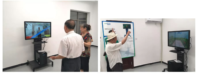 瞧,爷爷奶奶们在高科技情景互动训练体验中玩得不亦乐乎!
