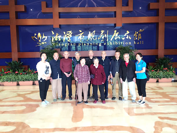 龙爷爷及中心住养的部份老人们在工作人员陪同下参观湘潭市规划展览馆。 朋友,哪天如果您不经意间经过我们这个设置在纱厂街社区的养老中心,您就一定可以见到我们开心的龙爷爷,可能在下棋,可能在打球,哈哈,如果您也爱好,不妨和我们的爷爷切嵯切嵯呗。