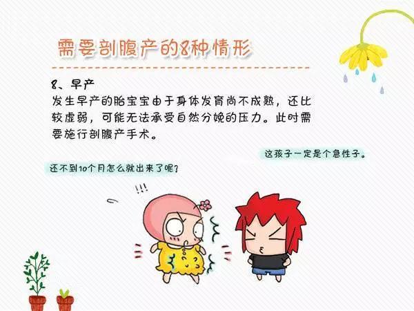 1、从见红开始,一般24-72小时就会有阵痛,如果是头一胎,建议准妈妈开始准备住院的物品,同时准妈妈还有时间可以洗个澡,再了解一下自己即将面临的是什么。 2、开始感觉到有疼痛就要区分是不是假性宫缩,假性宫缩没有规律,而真的宫缩会很有规律,最开始每10到20分钟疼一次,慢慢缩短至每10分钟疼一次,每次疼的时间大概20到30秒,这个时候就要吃得饱饱的去医院了,别忘记这个时候喝上一杯蜂蜜水,可以缩短产程的(这个阶段一般维持时间会较长,有的会疼十几个小时还没有开宫口的,或者只开到两指) 3、从10分钟一次开始慢慢缩短宫缩的停歇时间至6分钟一次,疼痛也要剧烈一些,这个时候让医生检查,通常已经开三指左右了,准妈妈要做的就是不要用力,不要害怕,等待小宝贝的到来,疼的时候可以数数,可以深呼吸,不疼立刻就躺好休息,或者吃些东西补充体力例如巧克力,或者喝一罐红牛。这个过程通常一两个小时 4、从宫口开三指开始就会更加缩短宫缩停歇时间,疼痛时间达到30秒或以上,但是这就意味着进入了第二产程了,不要着急,宝宝已经快要迫不及待的出来了,注意休息和深呼吸,记住,越疼越要深呼吸(这个阶段一般一两个小时) 5、如果这个时候破水,那么恭喜你,你可以直接上产床生产了,因为破水会缩短开宫口的时间,上产床并且医生让你用力那就是第三产程了,这个时候不能盲目的用力,一定要根据你的宫缩用力,开始宫缩就用力,向下用力,就像便秘的时候排大便一样用力,不要往回缩,宫缩结束立刻全身放松躺好休息,这个时候通常两分钟疼一次,一次一分钟,利用好这不疼的一分钟,充分休息,当医生看到宝宝的头就会让你先别用力,然后她进行侧切手术,其实很简单,就是一剪刀下去,再一用力宝宝就会顺利出来了,这个阶段一般比较快,都在一个小时内完成. 6、宝宝出来了,觉得好像大功告成了,别着急,最后两个步骤,娩出胎盘和缝合侧切刀口,前面都忍了,也别在乎这半个小时了,闭上眼睛好好休息吧,听着一旁宝宝哇哇的哭,成就感油然而生,很开心,很骄傲,很兴奋………… 该孕妇家属的做法实在让人气愤!为何不听医生的建议,要如此绝情!对于此事,我只能说:“这个孕妇嫁到他们家,真的是个错误!”。经过此事,有许多准妈妈要担心了,是顺产还是剖腹产?万一受不了也想跳楼怎么办!究竟什么情况下要选择剖腹产呢?有这么一些: